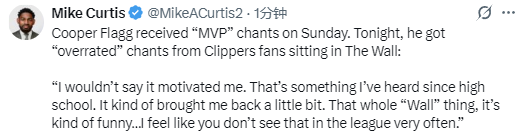 被快船球迷喊“被高估了”!弗拉格:感觉梦回高中时代 全场高呼还挺有意思