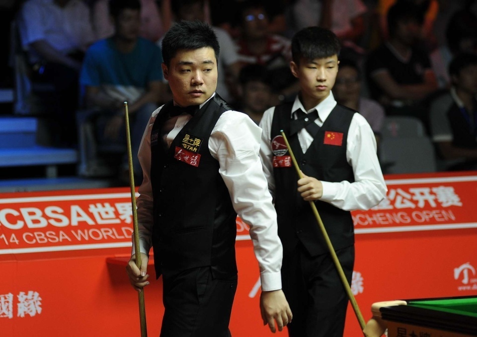 多年前比赛中的丁俊晖和赵心童