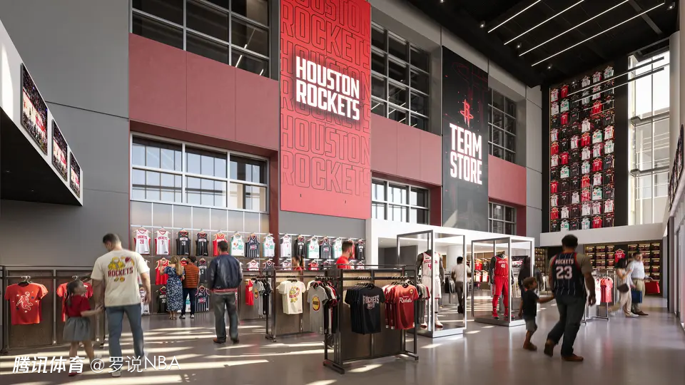 全新球队商店面积将比现有门店扩大一倍以上,满足球馆各类活动的周边商品需求,并增设更多收银台与自助结账机,提升购物效率。