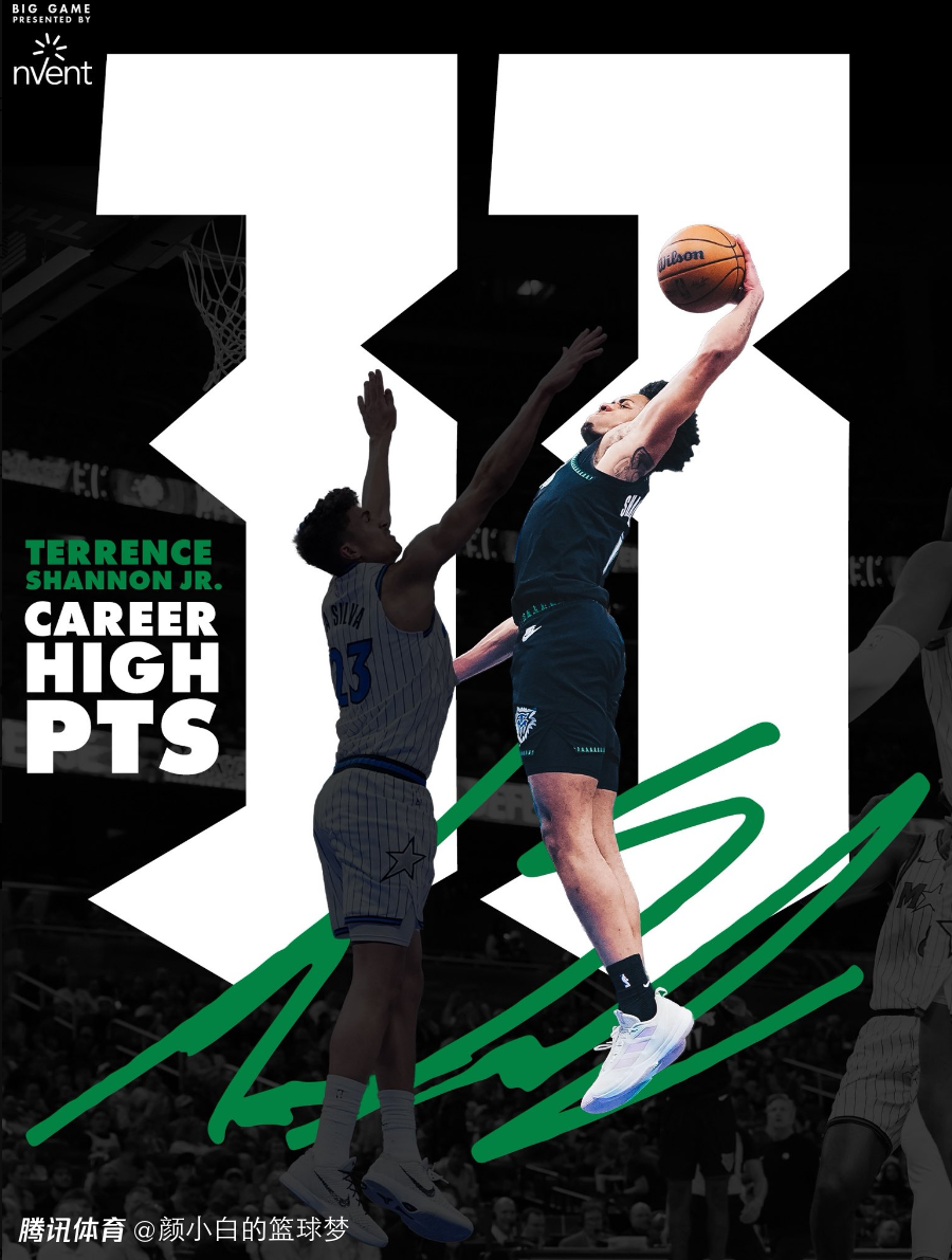 全场比赛香农31分钟,14中11,三分7中5,罚球6中6,拿到33分5助攻2篮板,命中率78.6%,三分命中率71.4%,真实命中率99.2%。这场比赛香农一战创造多项新高: