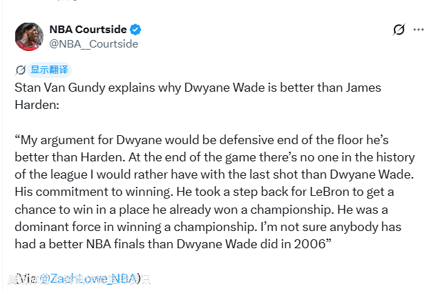 2026-04-10 06:50北京时间4月10日,名帅斯坦-范甘迪在播客节目中解释了为何他认为韦德强于哈登。