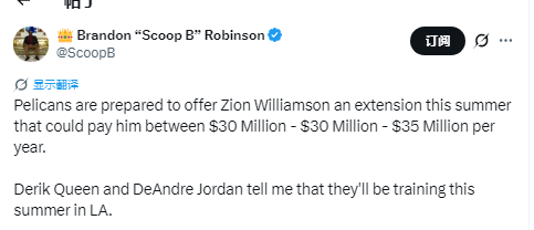 尽管主帅位置仍悬而未决,但鹈鹕方面消息人士表示,球队对锡安的支持毋庸置疑。据报道,球队计划在今年夏天为他提供一份2至3年的续约合同,年薪在3000万至3500万美元之间。这一潜在操作将进一步巩固锡安作为球队基石的地位,即便他目前仍处于2022年签下的那份5年续约合同的履行期内。