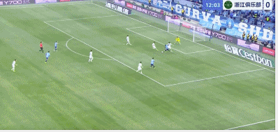 第13分钟,阿奇姆彭疑似越位位置接球,随后背身做给冯劲,冯劲包抄的射门击中门框。