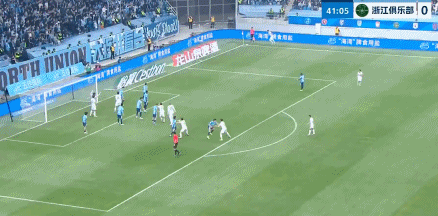 第41分钟,浙江队开出右侧角球,瓜里拉帕抢到落点头球攻门被大连英博后卫封堵。