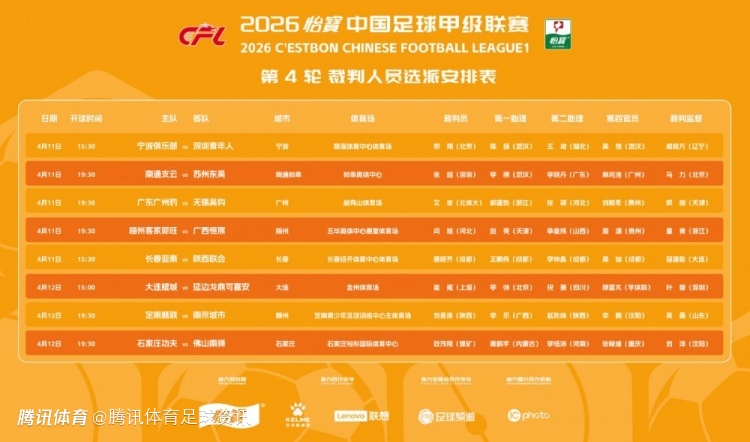2026-04-11 10:40北京时间4月11日,中甲联赛第4轮裁判选派情况正式出炉,多场比赛的执法安排随之确定。其中,焦点场次方面,唐顺齐将执法长春亚泰对阵陕西联合的比赛,艾堃则负责广东广州豹与无锡吴钩一役。