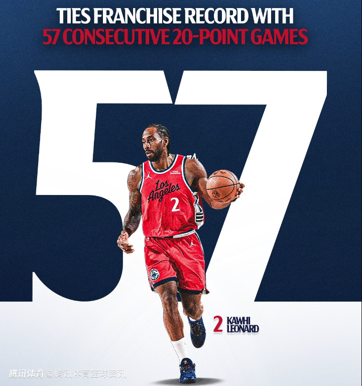 根据数据统计显示,这是莱昂纳德连续第57场比赛得分20+,追平鲍勃-麦卡杜所保持的快船队史纪录。若下一场比赛莱昂纳德还能砍下20+,他将完成对麦卡杜的超越。