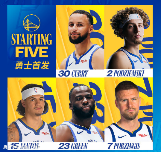 勇士:桑托斯、格林、波尔津吉斯、库里、波杰姆斯基