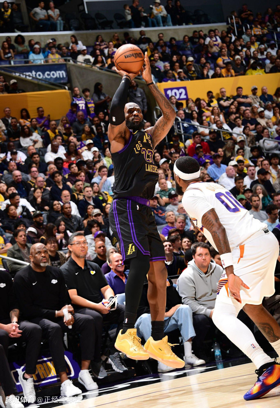 面对布克、杰伦-格林都缺席的太阳队,湖人队今天首节便打出进攻高潮,詹姆斯带队打出一波13-0建立领先优势,首节领先对手9分。次节比赛开始后,太阳队一波9-2缩小分差,但是随后詹姆斯很快带队稳住局面。第三节比赛中,湖人队限制太阳队单节仅得到16分,一举扩大领先优势。末节比赛,湖人队很快扩大领先到20分以上,随后比赛失去胜负悬念。