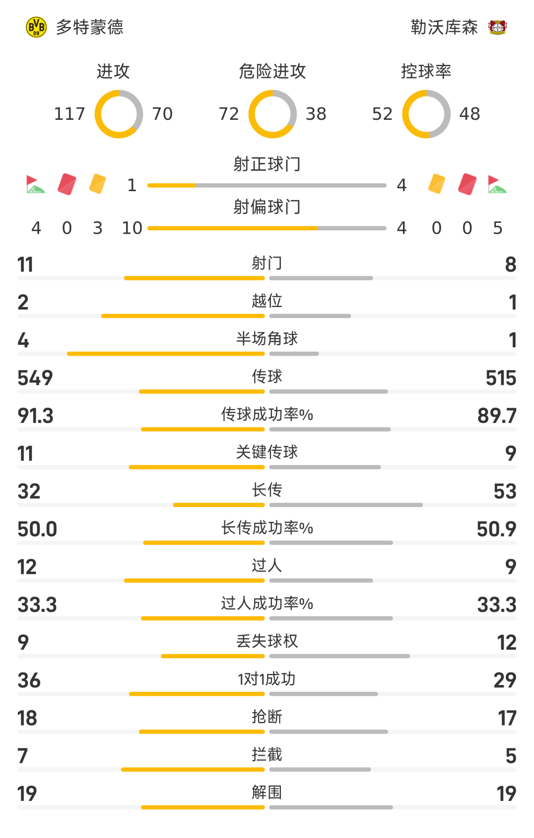 42’安德里希抢断后远射破门,勒沃库森1-0多特蒙德