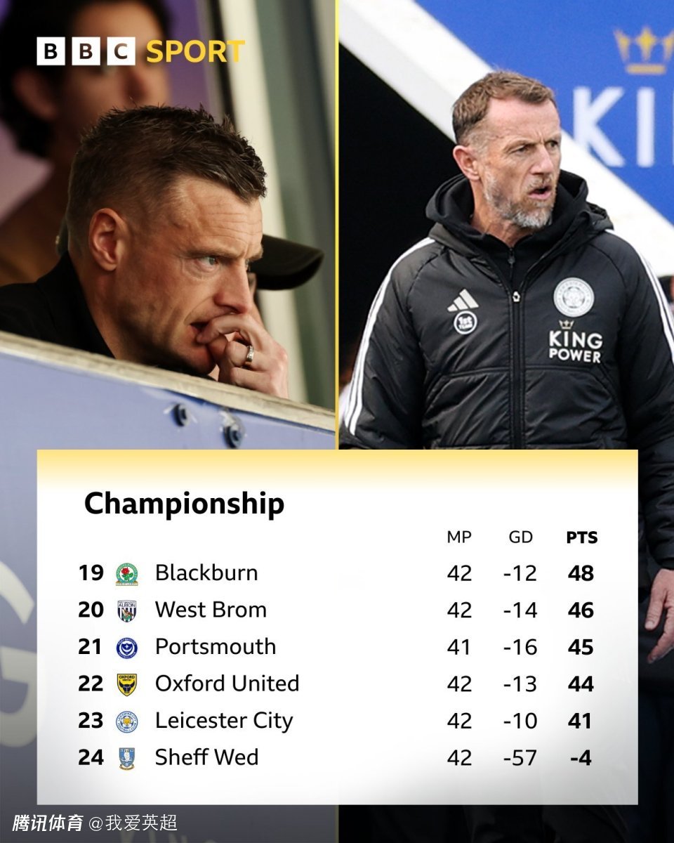 谁曾想到,本赛季莱斯特城不仅没能杀回英超,甚至还即将2年连降2级。此役输球后,莱斯特城随着牛津联和朴茨茅斯本轮双双取胜,莱斯特城的保级形势进一步恶化。