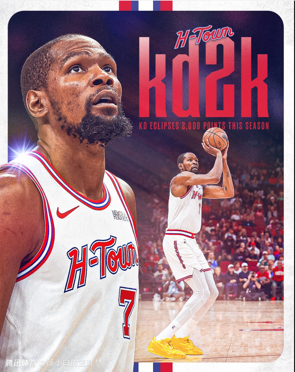 3.杜兰特完成单赛季2000分以上,个人生涯第八次;