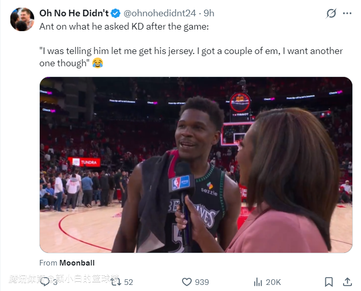 赛后爱德华兹谈到跟杜兰特的耳语:我当时跟他说,我想要你的球衣,虽然我已经有几件了,不过我还是想更多,哈哈哈。