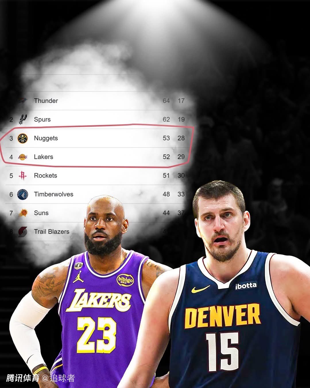 明日詹姆斯可能轮休不打,他们在季后赛首轮的潜在对手是火箭或者森林狼,究竟湖人和掘金最终排名会是什么样的结果?明日收官战,一切答案都将揭晓。