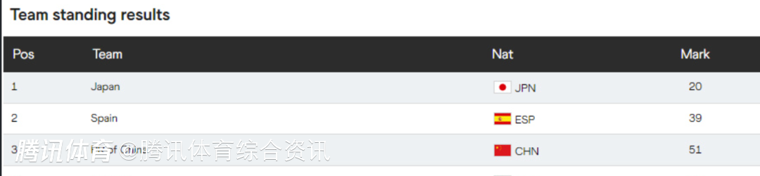 中国选手张芯瑞、丁硕、毕从善、赵祥飞和崔利宏分列第13、15、23、32和37名。日本和西班牙分获团体冠亚军,中国队获得铜牌。