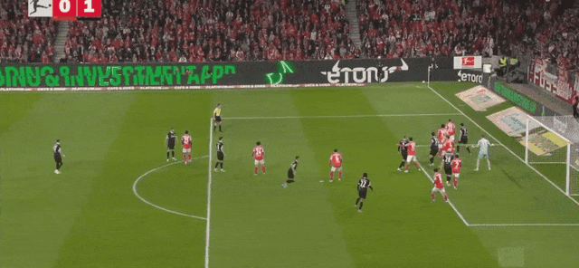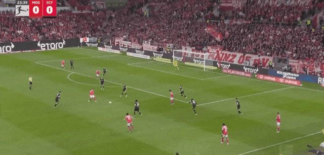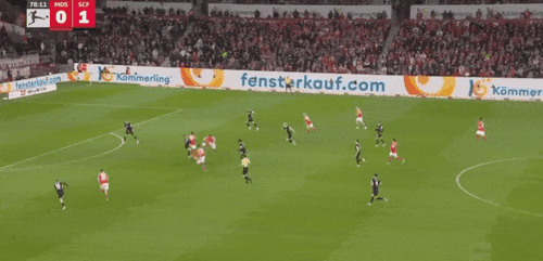 47’弗赖堡界外球进攻,赫勒头球吊射破门,美因茨0-1落后