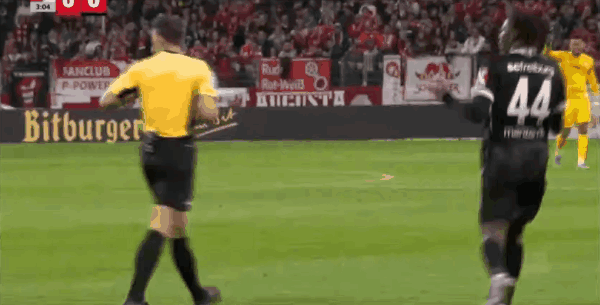 12’美因茨主帅费希尔不解裁判判罚,主裁判兹瓦耶尔到场边与其聊天