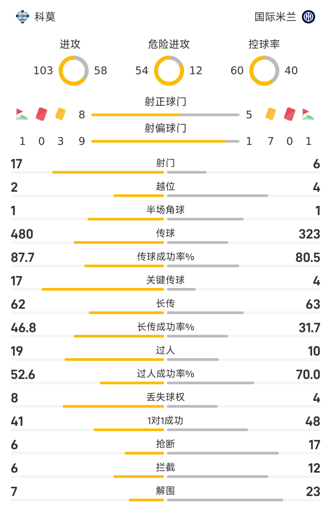 45’门将大脚助攻帕斯破门,科莫2-0国米