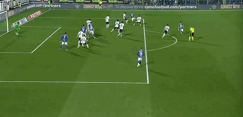32’科莫禁区连续打门,最终均被封堵