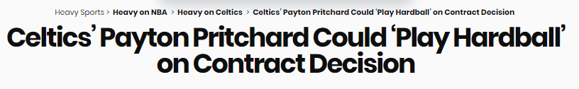一位东部联盟高管如此分析凯尔特人与普里查德在休赛期的长期续约前景:“对他来说,推迟接受凯尔特人开出的任何续约合同,或许才是明智的。他大概率想留队,他和球队阵容完美适配,而且他看起来也不是那种执着于更多出手、更多出场时间、更多球权的球员。他很清楚自己的角色。”