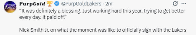 小尼克-史密斯:被湖人转正是一份恩赐 我努力拼搏终于得到回报
