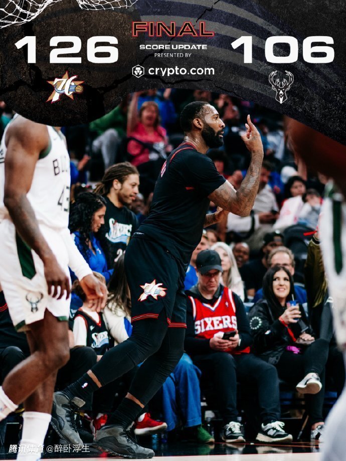 中场休息回来,76人第三节进攻火力爆发,第三节狂轰38-16净胜22分优势,前三节比赛结束76人已经反超18分优势。76人最多时刻取得28分优势,最终76人126-106大胜雄鹿。