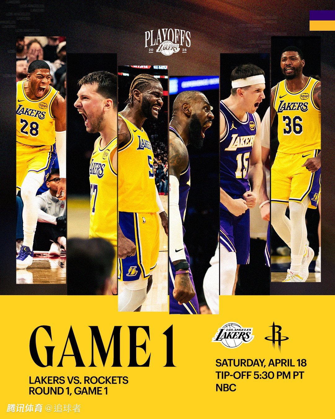 西部季后赛对决——(1)雷霆vs待定(开拓者太阳败者vs快船勇士胜者的胜者);(2)马刺vs待定(开拓者vs太阳胜者);(3)掘金vs森林狼(6)和(4)湖人vs火箭(5);湖人和火箭季后赛首轮G1对阵时间为4月19日早上8点30分,湖人和火箭双方都晒海报向对方宣战。