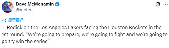 湖人主帅雷迪克表示:在我看来,季后赛就是关于韧性的较量,显然,在系列赛中坚持最久、最不愿放弃的那支球队终将获胜;我们会认真做好备战,全力拼搏,全力以赴去拿下这轮系列赛。
