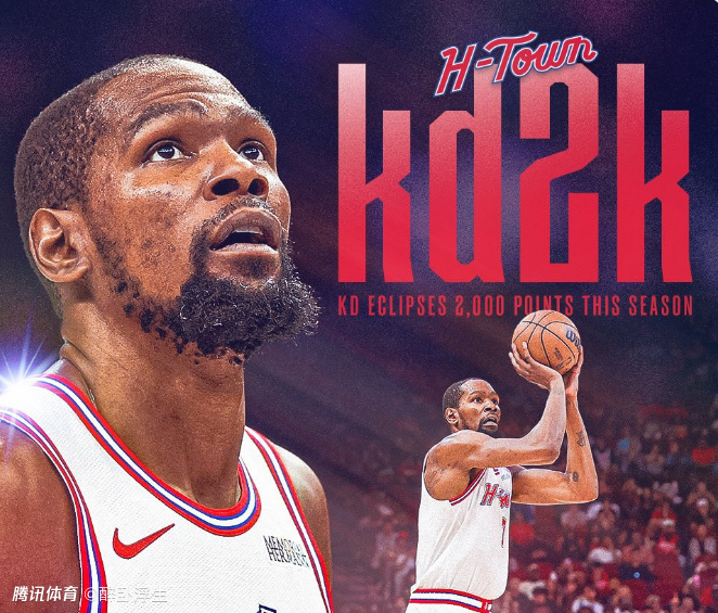 杜兰特本赛季达成2000分成就,超越卡尔-马龙创造历史最老单赛季2000分成就,也是生涯第8次做到。