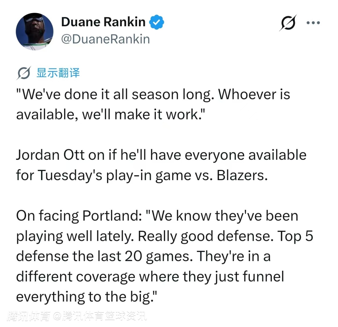 谈到附加赛对阵开拓者,奥特说道:“我们清楚他们近期状态火热,防守极具统治力,过去20场比赛防守效率稳居联盟前五。他们的防守体系很有针对性,会把所有进攻路线都往内线大个方向压缩。”