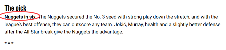 官网预测:掘金4-2淘汰森林狼