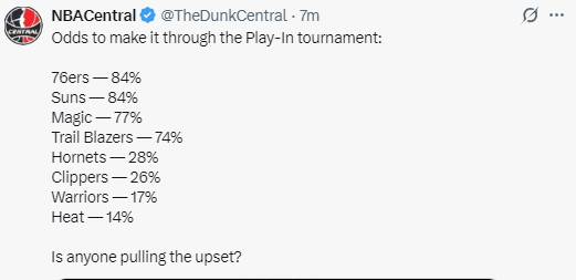 附加赛晋级概率出炉:76人太阳最被看好 勇士进季后赛概率仅17%