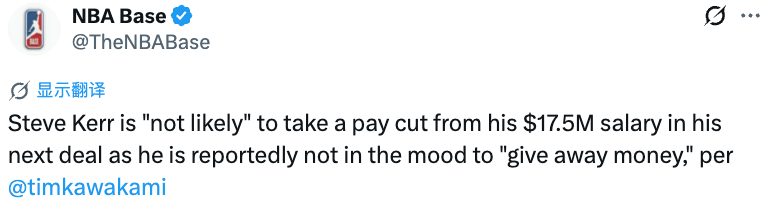 TimKawakami表示,即便科尔决定继续执教勇士,双方也必须就新合同展开谈判,而这对任何一方来说,都未必是一件简单的事。这大概就是科尔在赛季初说的——无论下赛季之后发生什么,必须对所有人都公平合适。