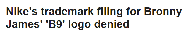 还等再等等!耐克申请布朗尼B9商标遭拒 与现有品牌高度相似