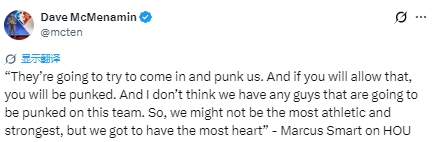 他们一定会一上来就想碾压我们、欺负我们。如果你怂了,你就真会被他们拿捏。我不认为我们队里有任何人会被吓倒、会任人欺负。我们也许不是运动能力最顶尖、身体最强硬的球队,但我们一定是最有血性、最有斗志的球队。
