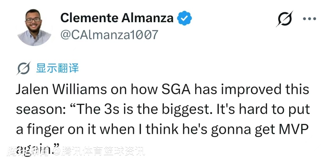 谈到亚历山大本赛季的进步时,杰威直言:“他最明显的提升就是三分。说实话我都想不出别的了,我认为他今年完全有机会再拿一次MVP。”
