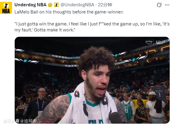 谈到季后赛生涯的首个绝杀球,鲍尔爆粗口表示:哦,等等,联盟并不将附加赛计入球员职业生涯的季后赛成就。