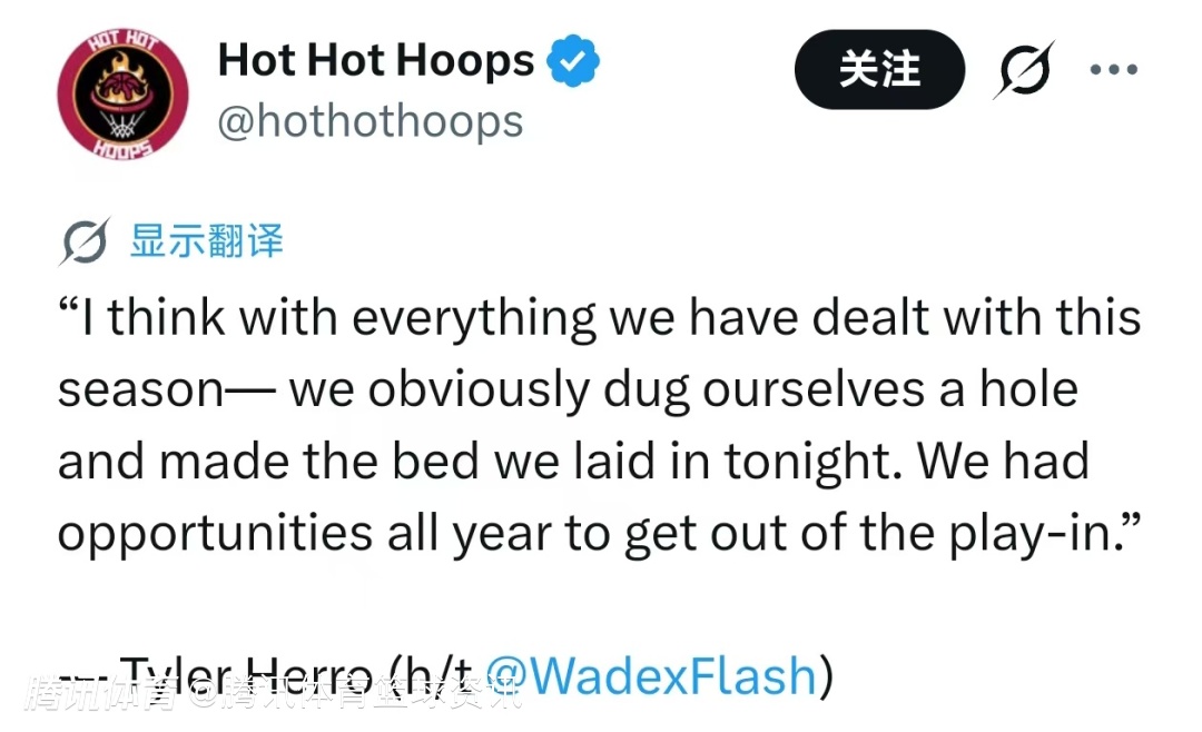 希罗在被问到热火本赛季本有实力不用打附加赛时表示:“我觉得考虑到我们本赛季经历的一切——很明显我们自己挖了坑,也只能承受今晚的结果。我们一整年都有机会摆脱附加赛的。”
