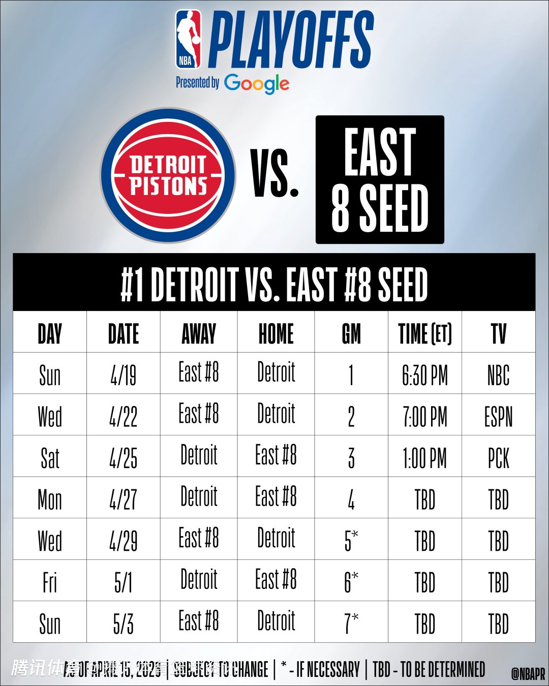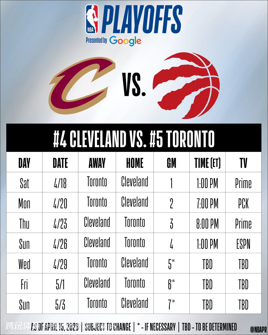 2026-04-15 14:00北京时间4月15日,NBA官方公布了东部首轮季后赛的全部赛程,具体情况如下(时间均为北京时间):