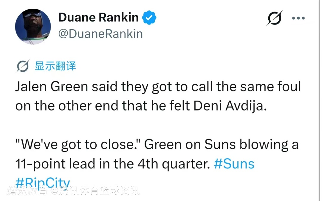 谈及太阳在末节挥霍了11分领先优势导致失利,杰伦-格林说道:“我们必须守住收官阶段。”