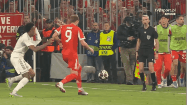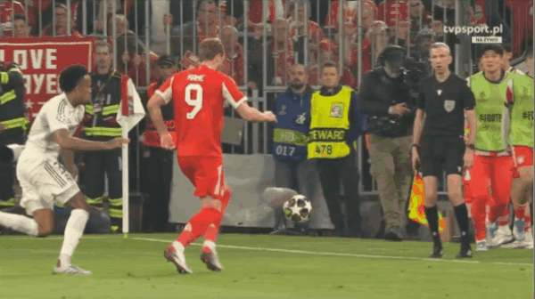 38’凯恩禁区内抽射破门,于帕断球送助攻,拜仁暂2-2皇马
