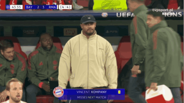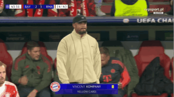 45+2’孔帕尼场边抗议吃到黄牌,若晋级下场比赛将停赛