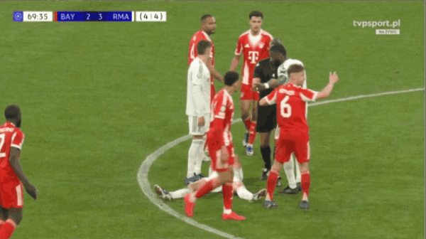 71’黄牌-吕迪格(皇家马德里) 对判罚表达异议