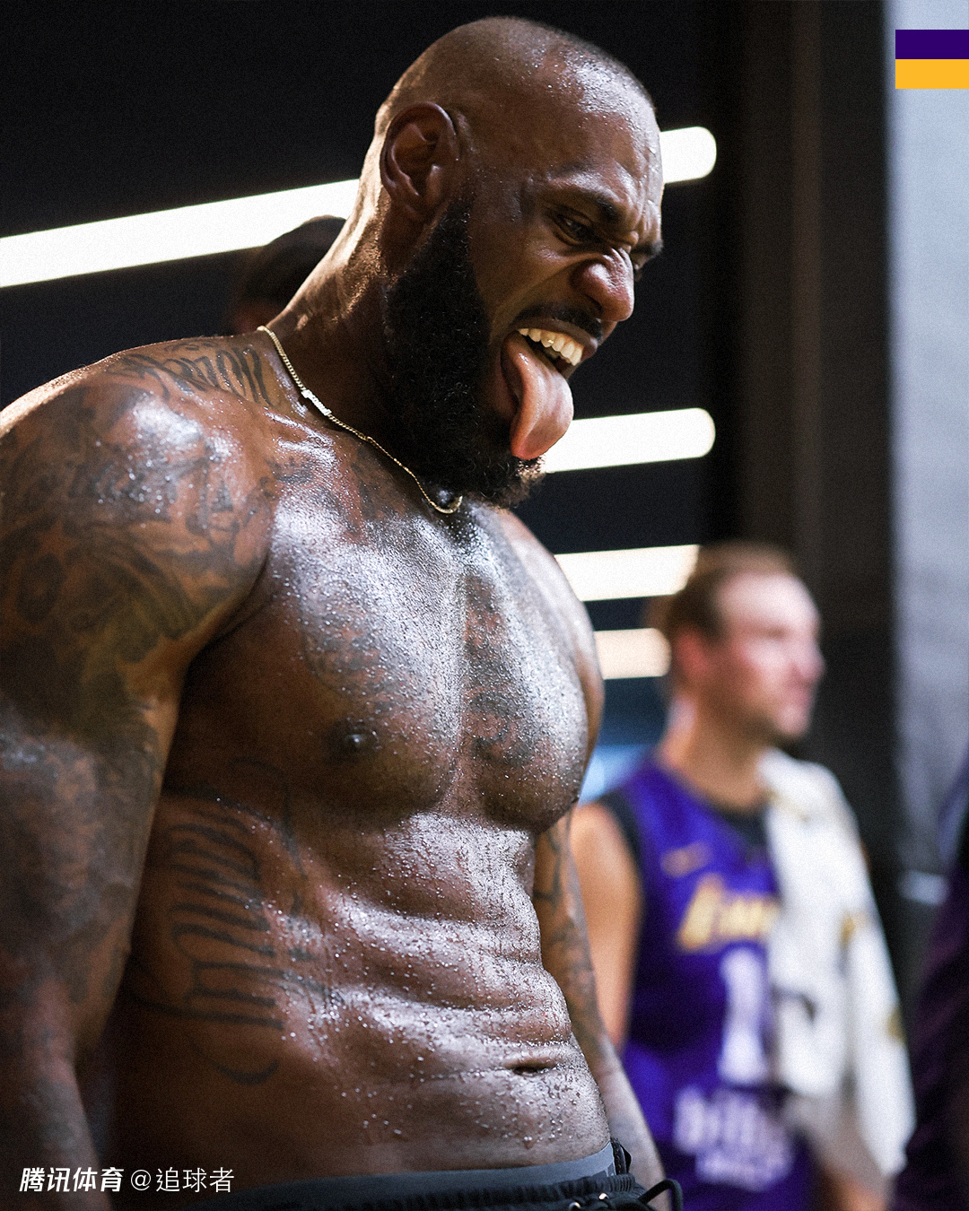 今日詹姆斯继续带队备战系列赛G1,他在健身房中光着膀子卖力咬牙苦练,早已练得浑身大汗并且累得吐舌,展示完美身材;41岁老詹是联盟自律的典范,据悉他每年花费百万美元保养身体,自律与苦练是他取得伟大成就的原因之一。