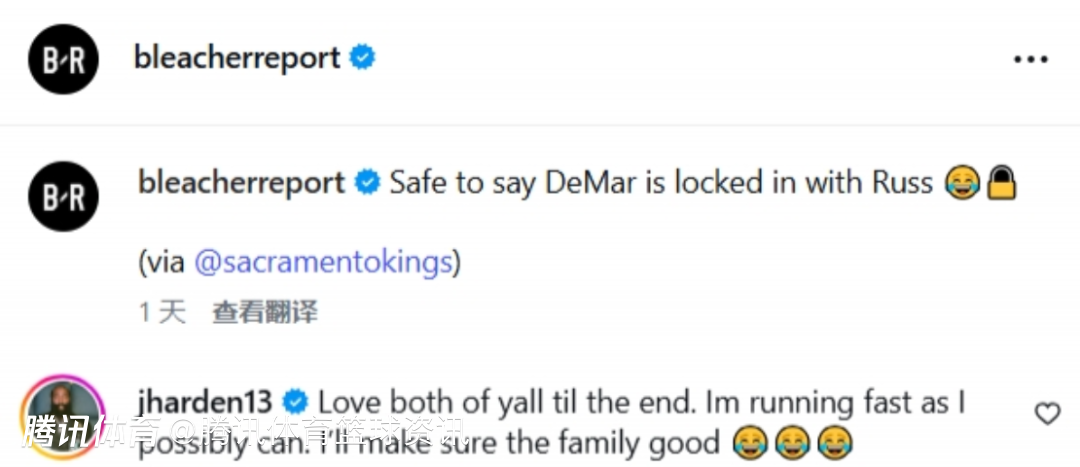 德罗赞表示:“如果威少跟十只大象打架,那我也会跟他并肩战斗!”对于这番言论,威少前队友,同时也是德罗赞的好Homie哈登也在社媒评论区调侃道:“我爱你们俩。但我会尽快溜走,我要确保家人的幸福。”
