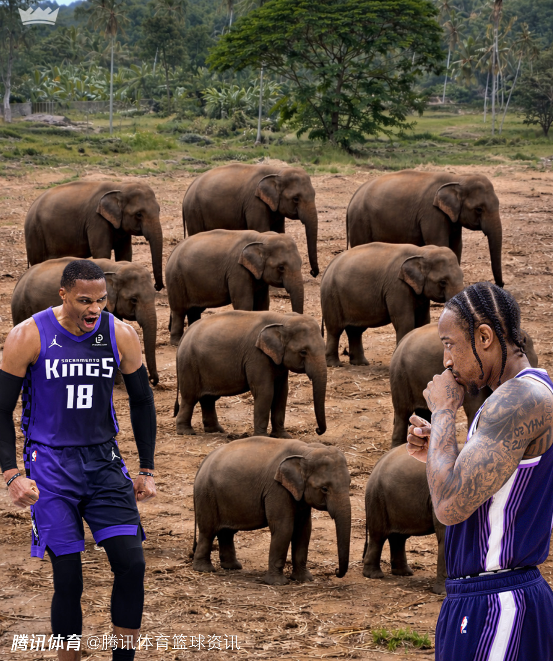 德罗赞愿帮助威少跟大象打架?哈登:爱你们俩 但我为家人得尽快溜走