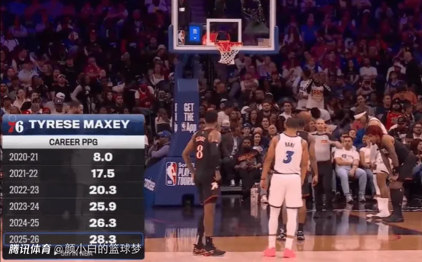 比赛开场后转播方也给出了马克西生涯场均得分的变迁:20-21赛季8分、21-22赛季17.5分、22-23赛季20.3分、23-24赛季25.9分、24-25赛季26.3分、25-26赛季28.3分,马克西这五年2.04亿的顶薪实在是太超值了。