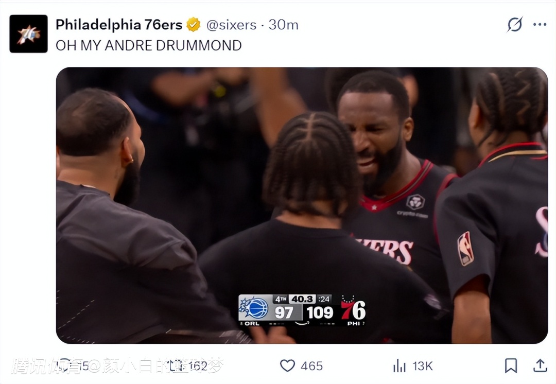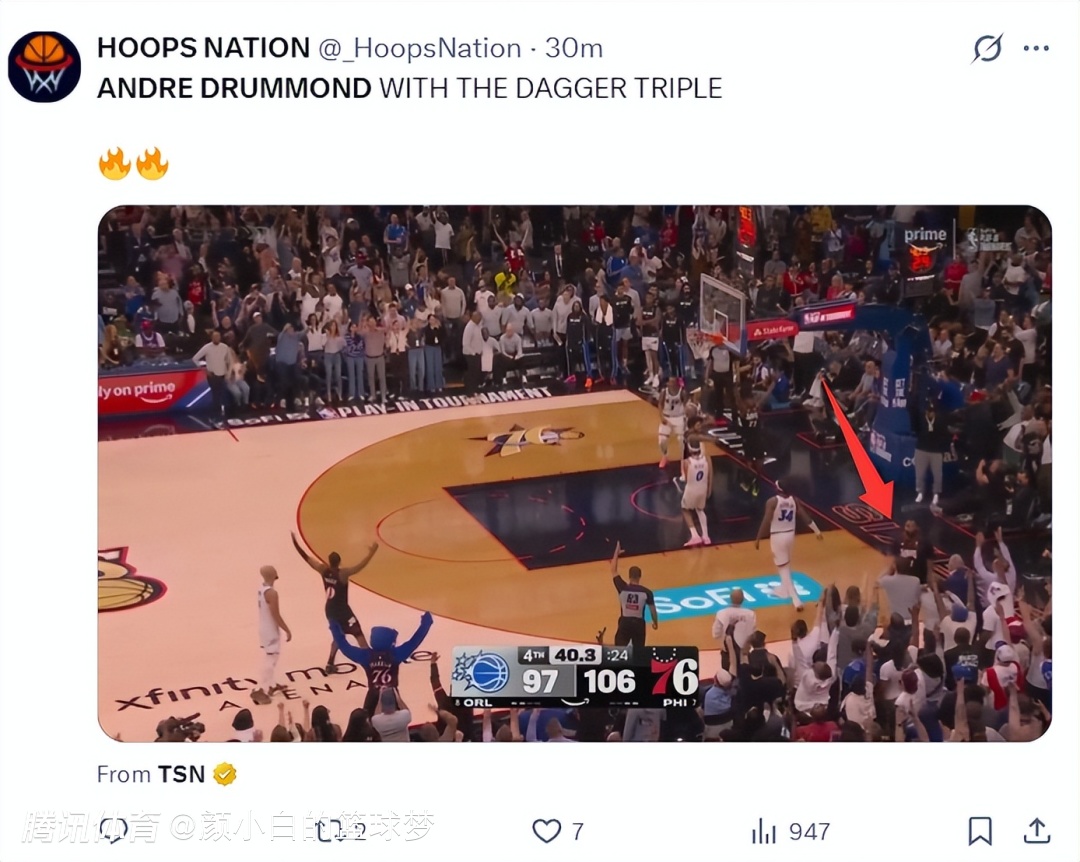 2026-04-16 12:00北京时间4月16日,NBA附加赛,费城76人主场109-97击退奥兰多魔术,费城锁定了东部第七的席位,季后赛首轮又是费城VS绿凯的恩怨局。这场附加赛马克西拿到31分6助攻是费城发挥最出色的那个,但赛后费城登上热搜的球员是德拉蒙德。