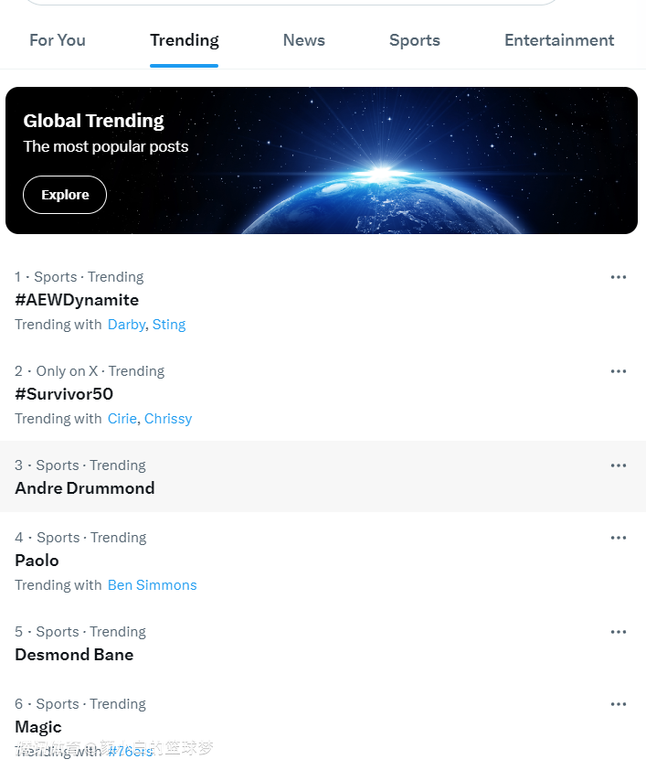 安德烈-德拉蒙德登上了全美第三热搜,第四热搜的班凯罗、第五热搜的贝恩、第六热搜是魔术,很明显庄神这场比赛的表现受到了美国球迷们的认可。
