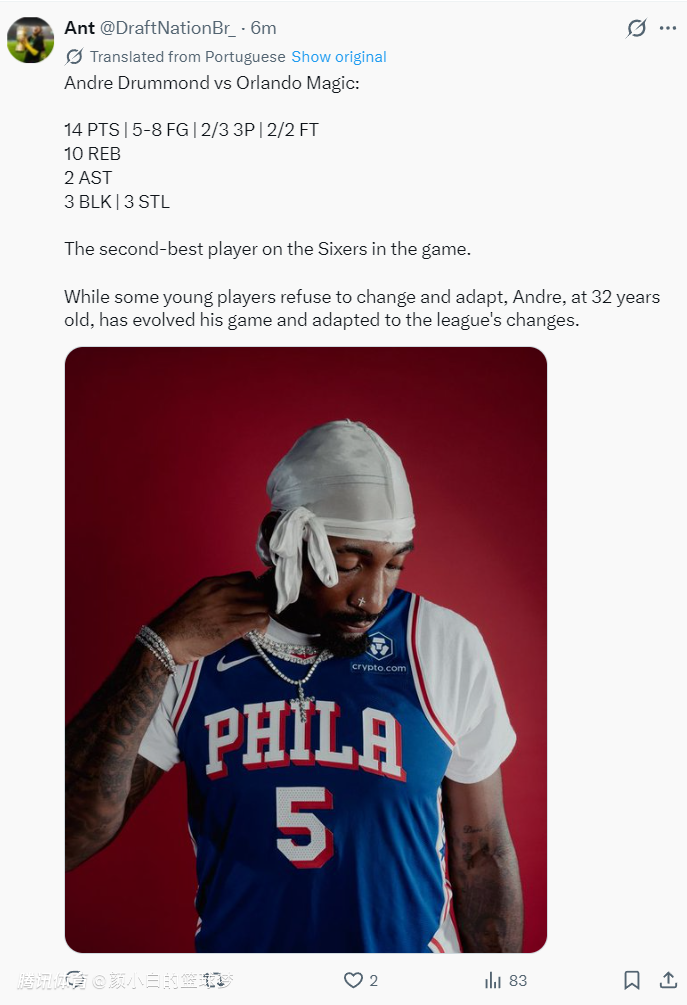 费城媒体写道:在关键的一场比赛中,德拉蒙德是76人发挥第二出色的球员,尽管一些年轻球员不愿意做出改变与适应,但32岁的庄神已经改变了自己的打法,他已经具备空间型的特色适应了小球联盟。