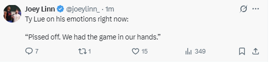 在谈到出局后的心情时,卢表示:“非常恼火。是的,胜利原本握在我们手中,却出现了一些低级失误,执行层面完全没做到位。比赛还剩10分钟时领先13分,我们本该收下比赛,对此我非常失望。”